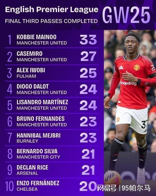 举几个例子,1月对阵曼城完成了2次抢断、2次解围、无球跑动距离达到了7.9KM,创造了本赛季英超曼联球员单场无球跑动距离之最。